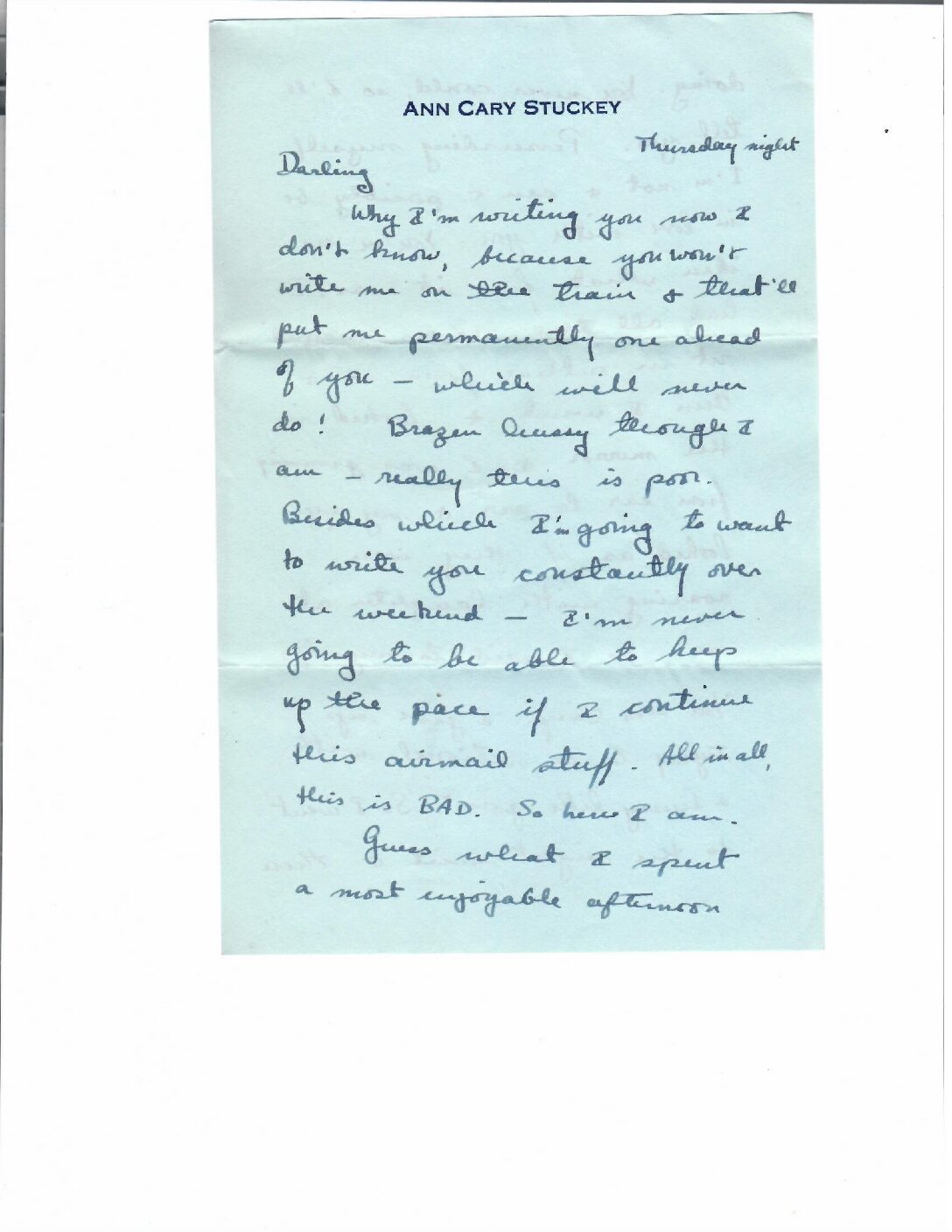 The 4000 letters in this collection center on Gordon T. Kinder (1919-2009) and Ann Cary Stuckey Kinder (1922-88). Both had Ohio roots dating to the 1790s: Gordon in Belmont County along the Ohio River and in Warren and Putnam Counties along the Indiana border, and Cary in Summit and Cuyahoga Counties around Cleveland.