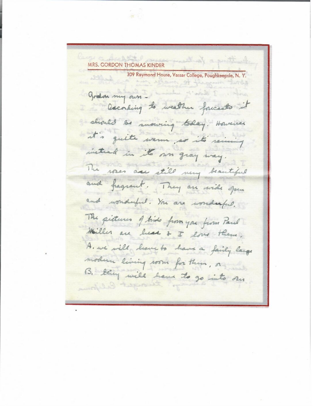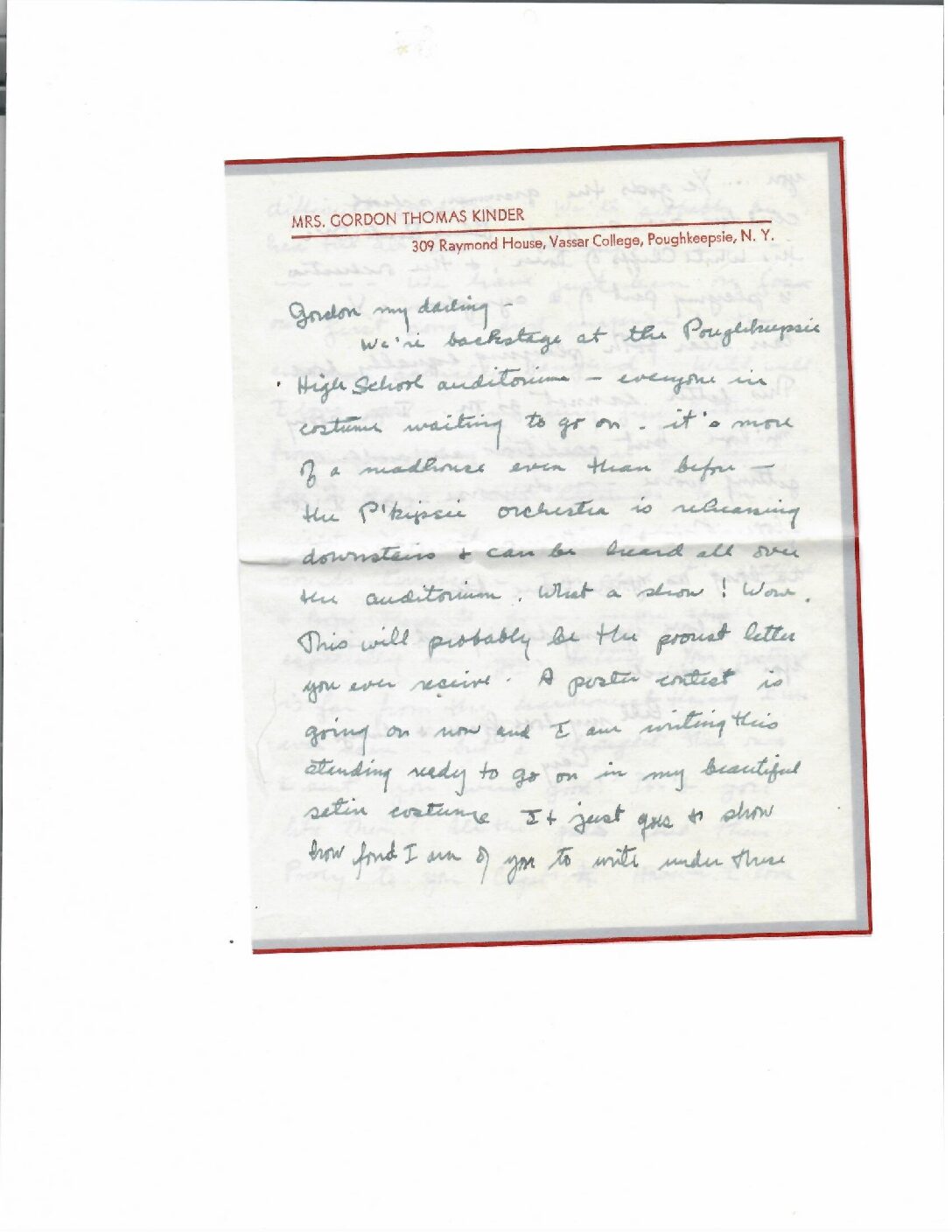 SENDER: Ann Cary Stuckey Kinder (CSK) SEND LOCATION: Vassar College, Poughkeepsie, NY
